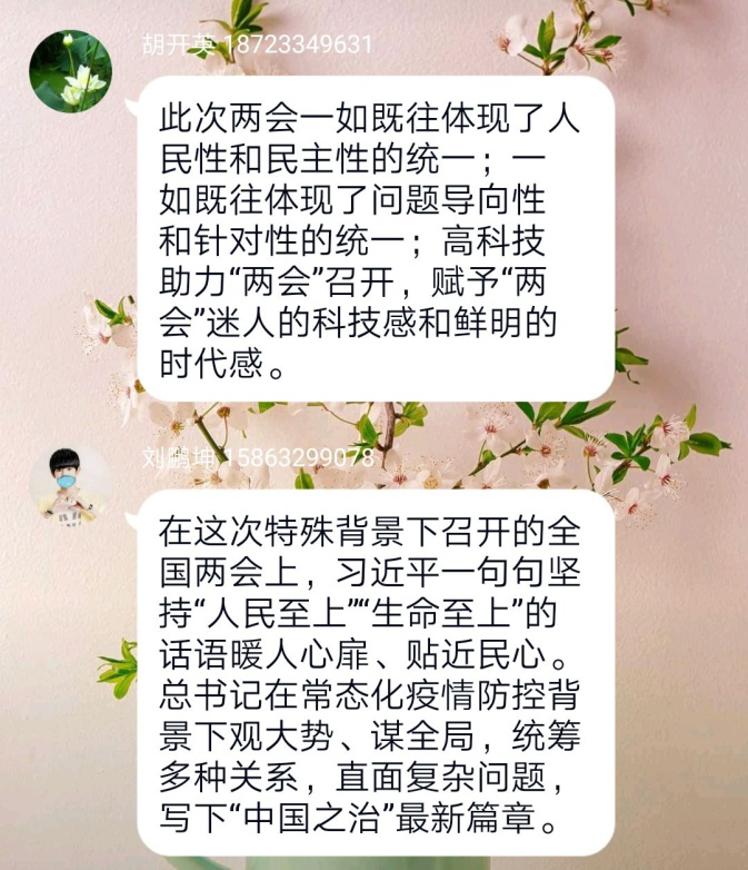 通过对《政府工作报告》的解读与两会精神的交流学习,每位党员都取得了巨大的收获。不仅系统了解我国在过去一年中的取得的成果,也更加坚定对打赢疫情阻击战、脱贫攻坚战、决胜全面建成小康社会的信心和决心。