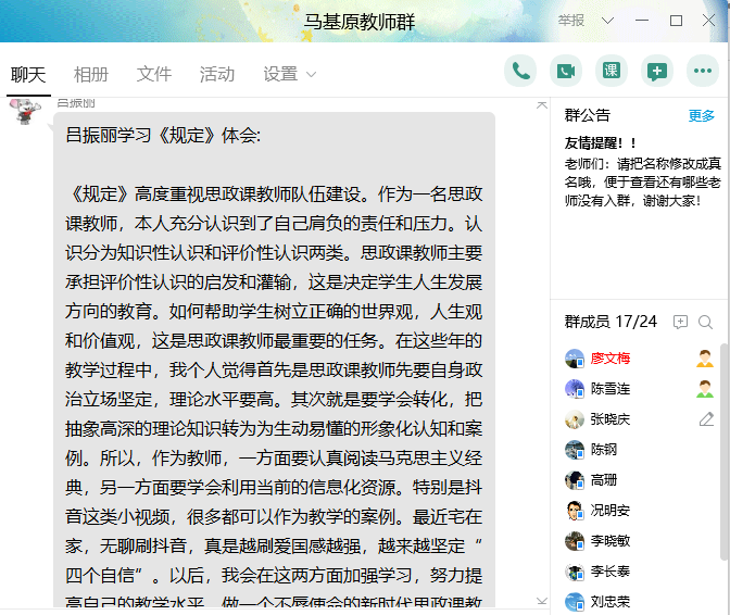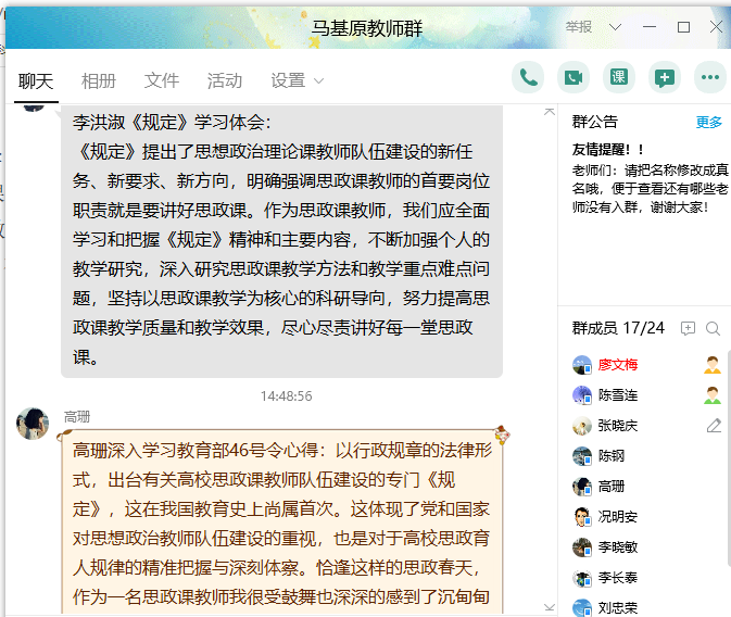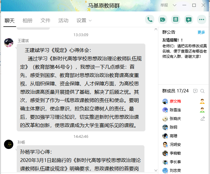 组织全体教师,以教研室为单位,通过钉钉视频会议方式,重温了习近平总书记“3•18”重要讲话,认真开展了《规定》的学习讨论。大家认为,思政课教师赶上了最好的时代,迎来了历史上最好的时期,党和国家对高校成人网