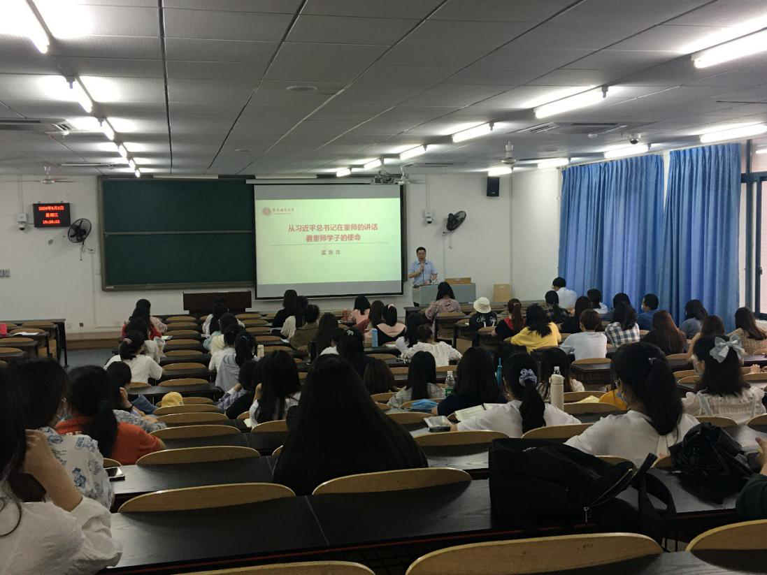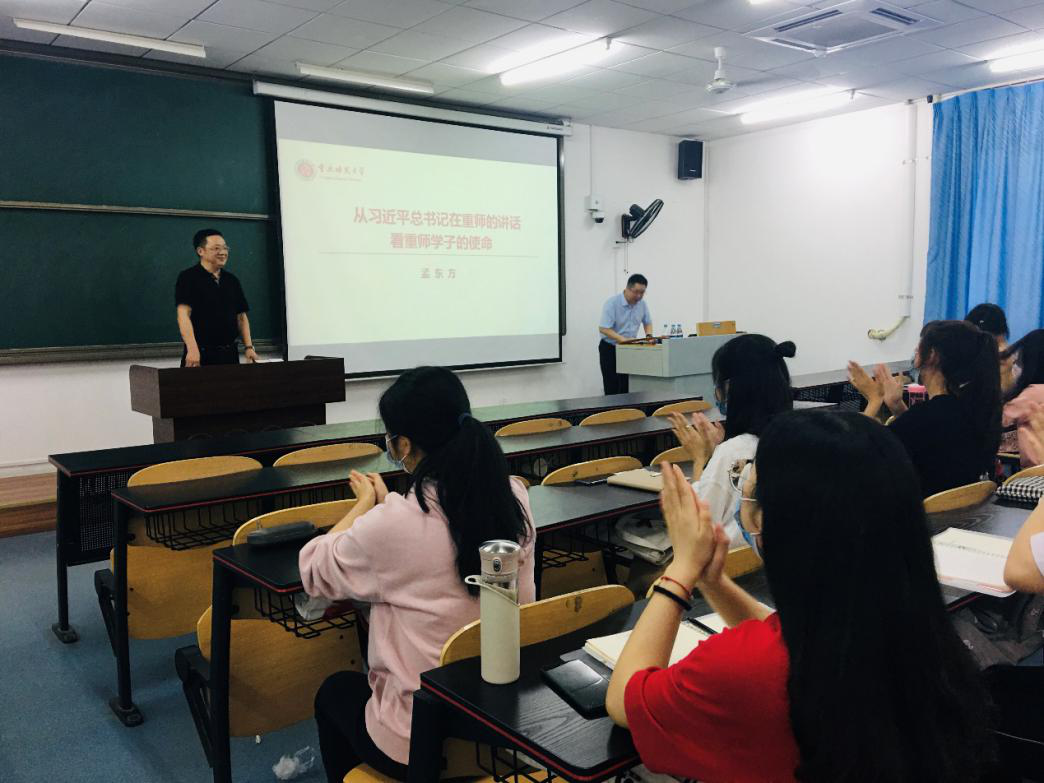 孟东方教授从“习近平总书记在重师的讲话”“从习近平到习近平思想”“习近平新时代中国特色社会主义思想”和“如何做一名新时代合格大学生”等四个方面进行了生动而细致地讲解。首先,孟东方教授以习近平总书记2010年12月7日在成人网