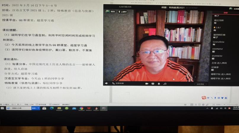 第三阶段,线上互动阶段。老师们通常要留十五分钟左右的时间对学生的学习情况进行总结、答疑解惑。同时,还设置了抢答、辨析、讨论等形式检测学生对教学内容的掌握情况,对学生反馈出来的薄弱点,及时进行补充讲解。此阶段主要有两个任务:一是,以知识网络图为中心结合学生们在学习通中发布的问题,有重点有针对性的讲解相关知识。二是,讨论在课程准备阶段给出的案例与情境性问题。这一阶段的教学在QQ群、微信群、钉钉群中以直播互动的方式进行。