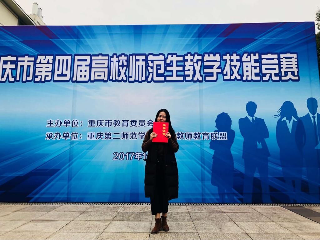 2017年11月10日,重庆市教育委员会主办,重庆第二师范学院和重庆教师教育联盟承办的重庆市第四届高校师范生教学技能竞赛在重庆第二师范学院南山校区举行,我院2014级思想政治教育专业学生王茜、郑怡代表学校参加了比赛。
