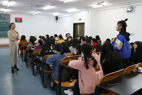 首先,为让同学们对“体验式教学”有更为深入地理解,代老师结合自身教师职业生涯的经验,从教师主导、学生积极参与、加深学生印象和保持师生和谐关系方面入手,深入浅出地让同学们了解 “体验式教学”的含义和实施条件。接着,代老师将“体验式教学”与“传统教学”进行了比较,针对“传统教学”的课堂中普遍存在的浅表式教学和教学效果的片面性问题作了详细地分析,让同学们对实施“体验式教学”的必要性有了更加深刻的认识。她强调,就“体验式教学”的教学方法和教学设计而言,学生自身体验和对知识的生成性是教学重点。