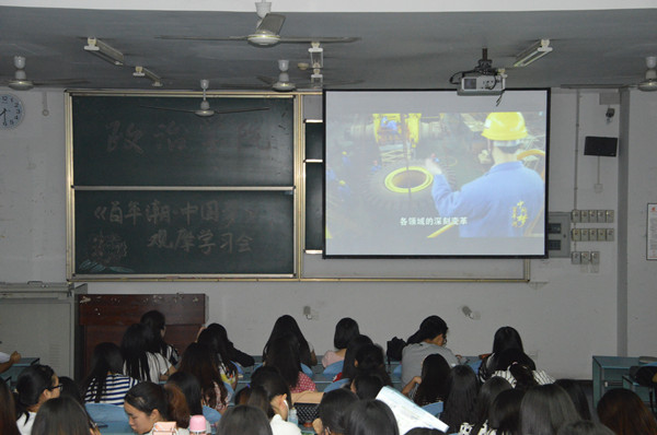 随后,活动现场开始放映《百年潮,中国梦》的一、二集。由视频带领老师、同学们回顾了中华民族一个半世纪的屈辱与抗争、中国共产党90多年的苦难与辉煌、中华人民共和国60多年的探索与追寻、改革开放30多年的光荣与梦想。老师、同学均认真观摩、细致体味、深入理解。