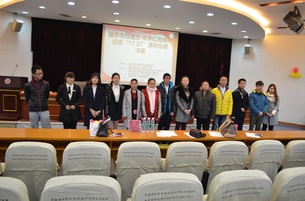 学生社团联合会于凯撒报告厅共同主办了“‘继承先烈遗志,传颂红岩精神’纪念‘11.27’演讲比赛决赛”。协办单位有重庆医科大学青年马克思主义者协会、成人网
