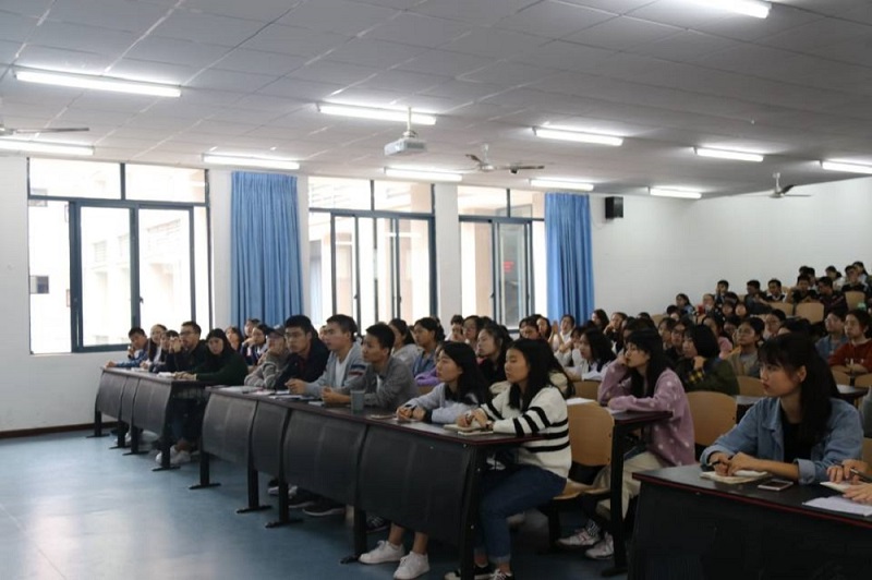 首先,赵瑛老师通过展示一位胃癌晚期病人的朋友圈文字,让同学们感受他面对病魔的乐观心态,从而引出本次讲座主题:珍爱生命,健康快乐。随后,赵瑛老师以人们对手机的爱护为喻,生动形象地告诉同学们珍爱生命的重要性,其幽默风趣的语言使在场同学十分活跃。接着,赵老师从日常生活的角度,引导同学们转变检查身体的观念,向同学们传输了定期体检的思想。紧接着,赵老师用聂卫平、王均瑶、吴立君等成功人士因缺乏健康常识而身患癌症去世的例子,直观地告诉同学们身体是革命的本钱、拥有健康意识的重要性。最后,赵瑛老师用“管住嘴,迈开腿,好心情”九个字作为对本次讲座的总结。