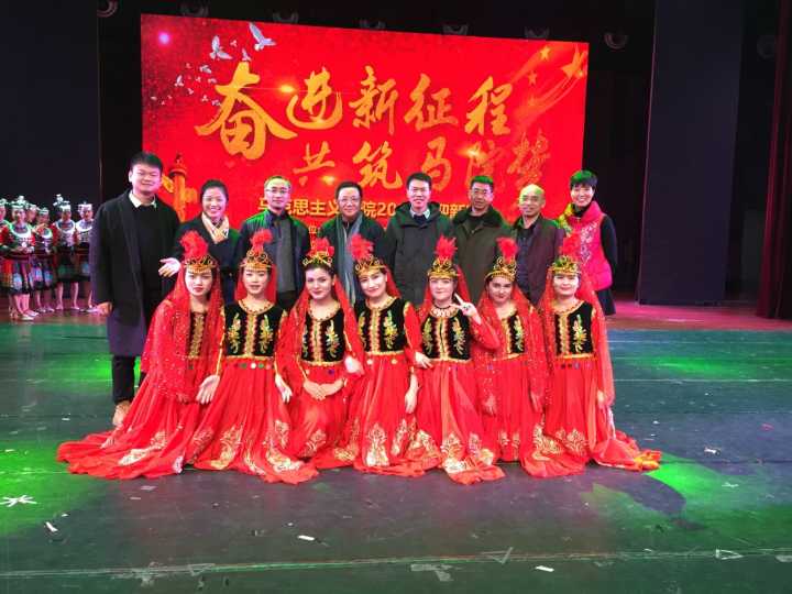 学子无私奉献、吃苦耐劳的可贵品质。紧接着,来自学院各年级的少数民族同学带来具有民族特色的歌舞串烧表演,土家族、新疆维吾尔族以及苗族的同学们用他们独特的方式展现了少数民族人民的勤劳和智慧。晚会在中国近代史纲要教研室的老师们带来的歌曲合唱《同一首歌》中圆满结束。