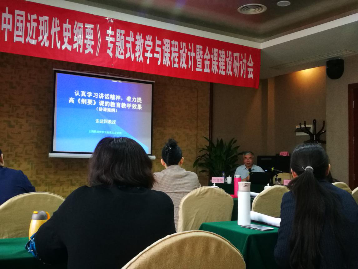 张建国教授,是教育部高校思想政治理论课教学指导委员会《纲要》课委员,马工程重点教材《纲要》编写组首席专家,受邀参加3.18座谈话,也是宣讲团的成员之一。在5月1日上午,张教授作了关于如何学习和深入领会习总书记3.18讲话精神的专题讲座,他比较全面地介绍了习总书记3.18讲话精神“四个非常重要”(即思政课程非常重要、师资队伍非常重要、教学非常重要和党的领导非常重要)的主要内容,概括了具有站位高、系统强、分析深、科学性、辩证性、务实性、鲜活性和突出问题意识的八个特点,并提出了如何学好讲话精神的建议和要求。下午,张教授结合《纲要》课程作了如何抓住重点,推进专题式教学的改革与创新的讲座,提出了《纲要》课的专题教学应该围绕“四个选择”设计15个专题展开教学,这对我校正在进行的专题式教学改革有很大的指导意义。