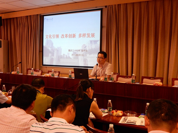 受训的浙江衢州常山县中小学校长、幼儿园园长带队领导代表全体参观人员对37中学的热情款待表达了谢意并作了专题发言。