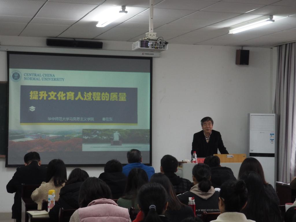 2019年311日上午,华中师范大学成人网 博士生导师马克思主义理论一级学科负责人思想政治教育学科博士点负责人秦在东教授应院邀请在汇贤楼201会议室作了题为提升文化育人过程的质量”的学术报告成人网 部分教师与全体研究生共同聆听本次报告报告会成人网 院长陈洪教授主持。