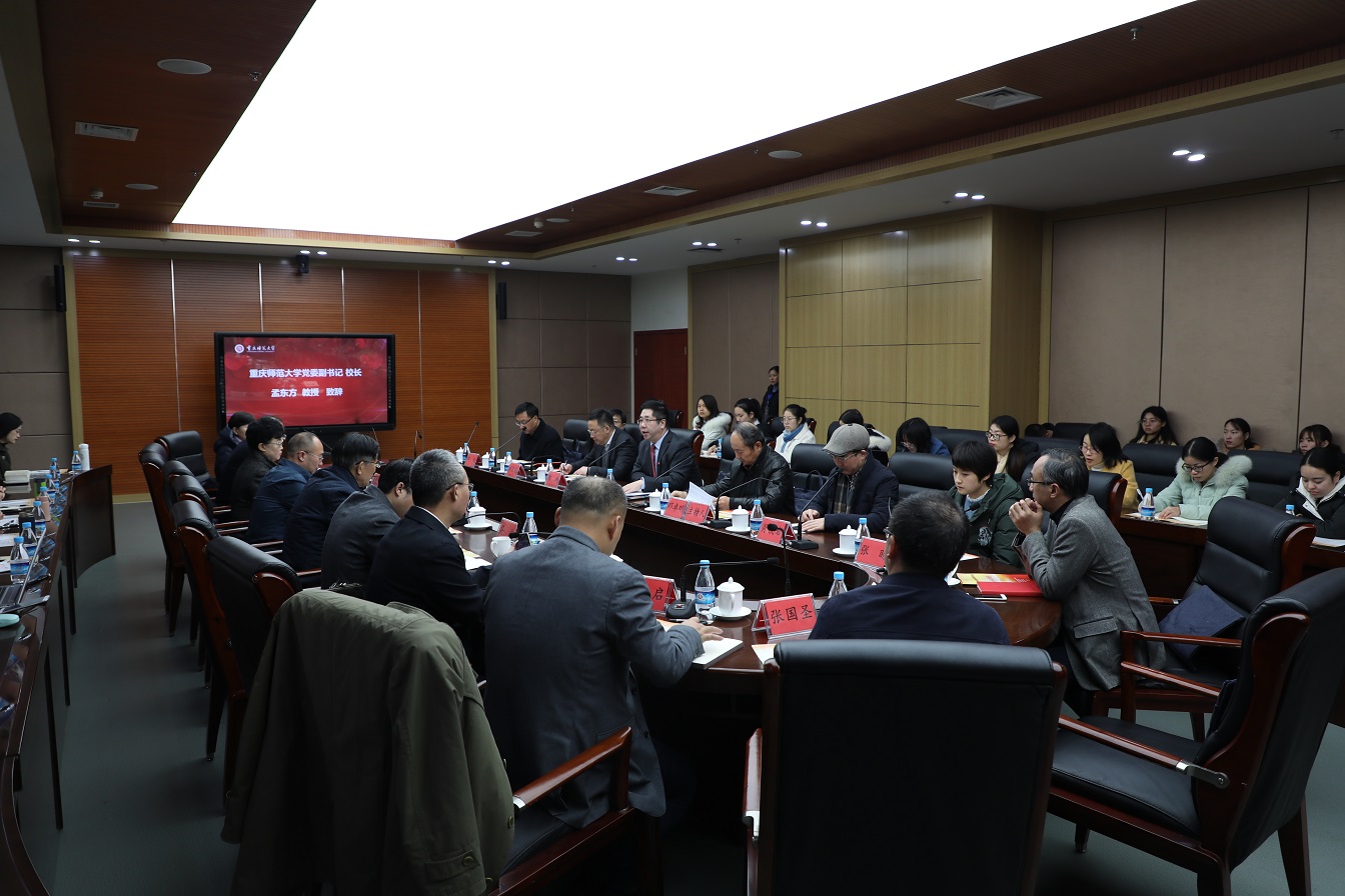等高校的专家学者汇聚一堂,就新时代如何提升思想政治教育质量、如何构建科学有效的思想政治教育质量评价体系进行了深入探讨和交流。中共重庆市委教育工委、市教委宣教处处长吴边,我校校长孟东方教授到会祝贺论坛召开并致辞,中国教育发展战略学会思想道德专业委员会理事长冯刚教授代表主办单位讲话,成人网