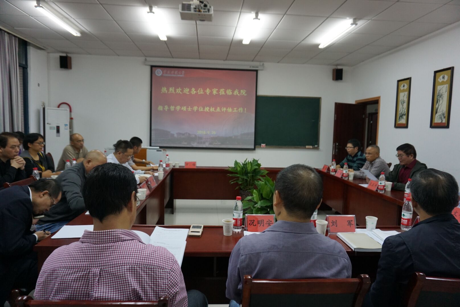 院长陈洪教授,哲学一级学科带头人李文华教授、学位点负责人李长泰教授以及哲学学位授权点全体骨干教师、学院班子成员、管理人员参与了本次评估活动。
