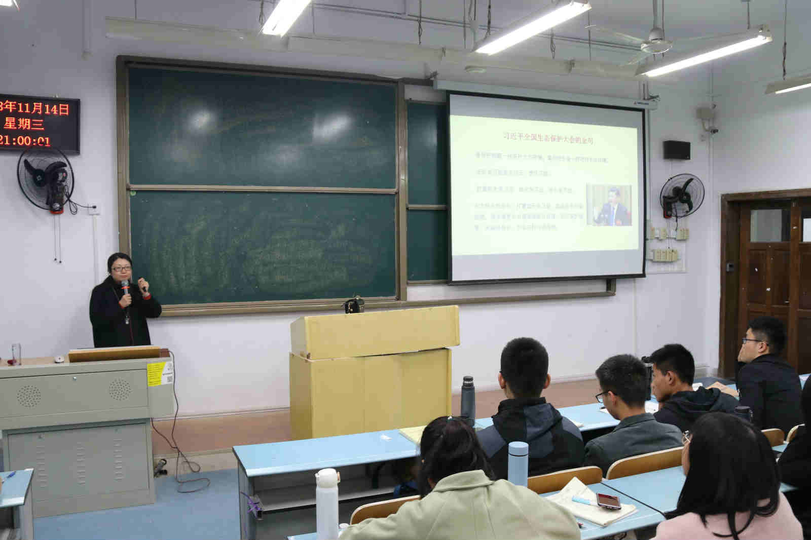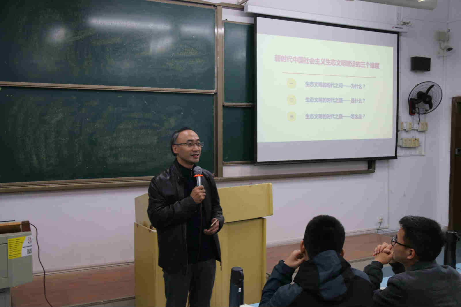 兰桂萍副教授主讲,主题是“近水楼台先得月:绿水青山就是金山银山”。讲座由学院党委书记刘军主持。