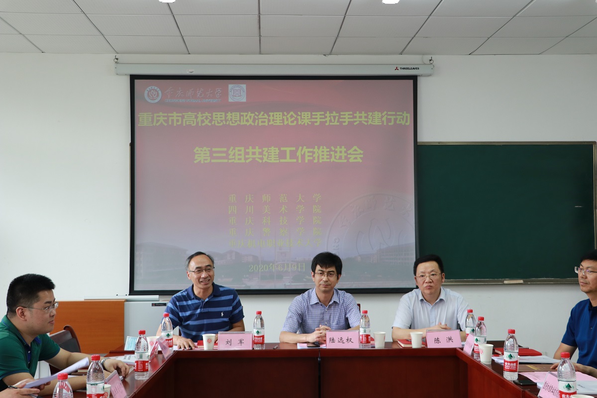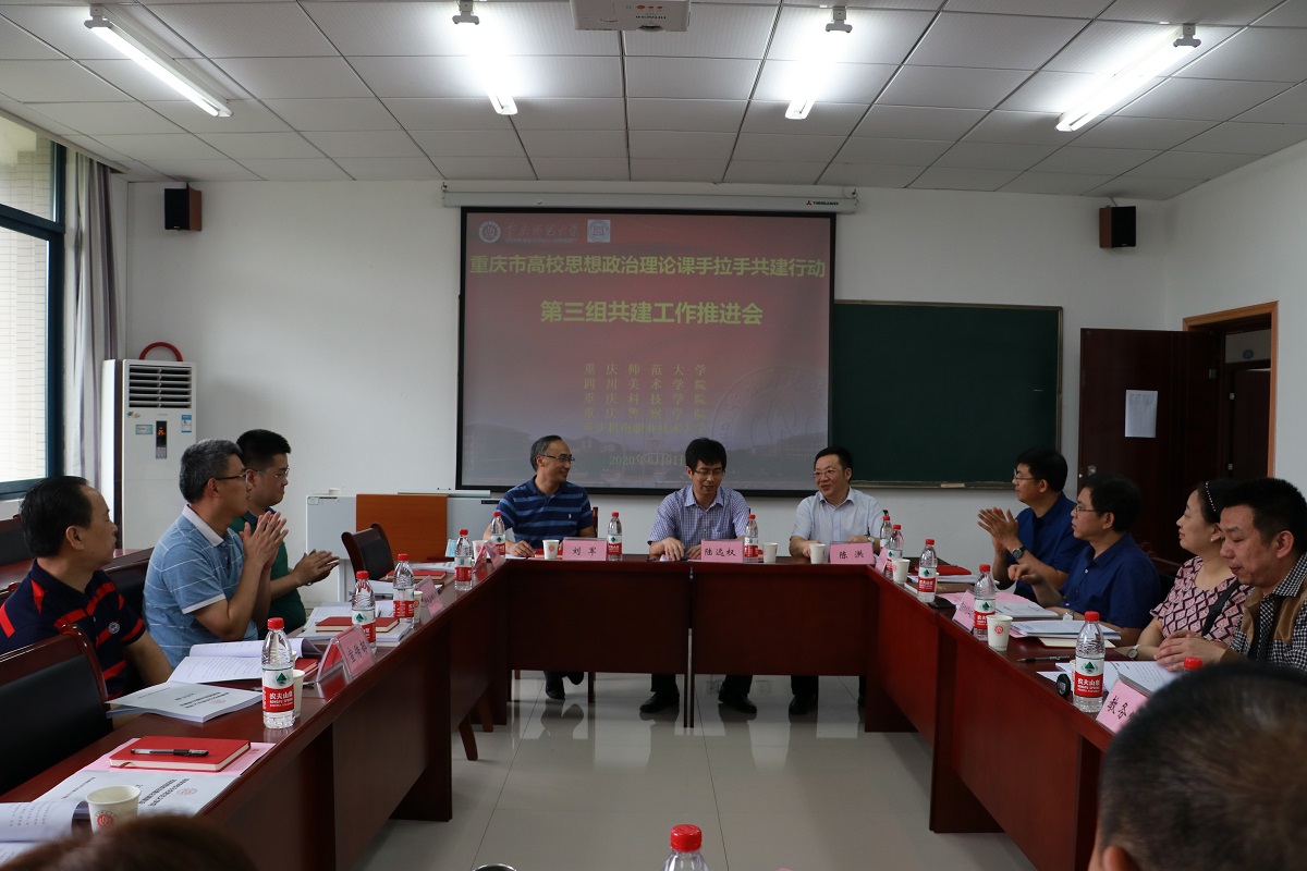 为深入贯彻落实《中共重庆市委教育工作委员会办公室重庆市教育委员会办公室关于开展高校思想政治理论课手拉手共建行动的通知》(渝教工委函〔2020〕5号)精神,加强高校思政课教师队伍建设,落实立德树人根本任务,发挥思政课铸魂育人的主渠道作用,增强思政课的思想性、理论性、针对性、实效性和亲和力,提高思政课教学和育人质量,培养德智体美劳全面发展的中国特色社会主义建设者和接班人,2020年6月9日下午,重庆市高校思想政治理论课“手拉手”共建行动第三组共建工作推进会第一次会议在组长单位成人网 顺利举行。成人网 党委常委、副校长陆远权教授及校党委宣传部、教务处负责人出席会议,第三组成员高校成人网 、四川美术学院、重庆科技学院、重庆警察学院、重庆机电职业技术大学分别派成人网 领导、思政教学部负责人参会。会议由成人网 党委书记刘军同志主持。