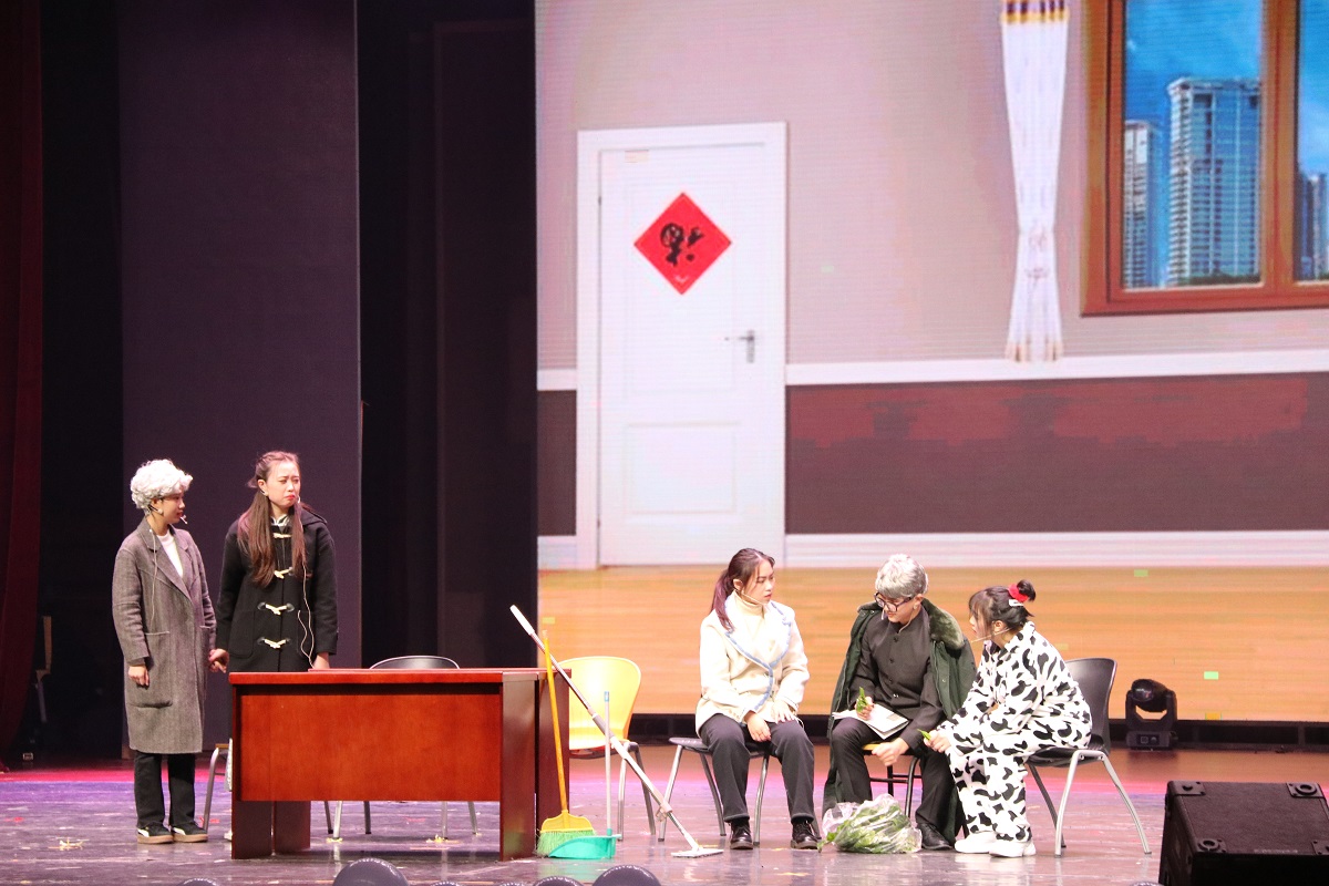 其中,根据暑期实践活动改编的情景剧《你好,三下乡》,表演者带领观众回顾实践团成员深入基层的实践故事,展现青年“小我融入大我,青春献给祖国;助力脱贫攻坚,投身强国伟业”的责任与担当。