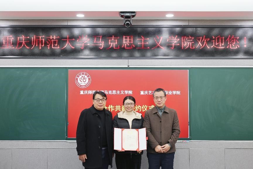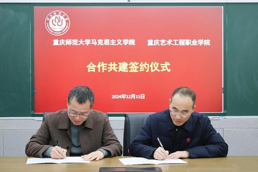 2024年12月11日,我校与重庆艺术工程职业学院举行合作共建签约仪式。双方经友好协商决定,为深入学习贯彻习近平总书记关于思政课建设的重要指示精神和关于教育的重要讲话精神,贯彻落实全国和重庆市教育大会、全国和重庆市新时代学校思政课建设推进会的重要精神,全面贯彻党的教育方针,落实立德树人根本任务,打造新时代西部思政教育新高地,推进《重庆市推进新时代学校思政课建设行动方案(2024-2027)》,构建大中小学思政教育一体化建设格局,落实公办民办院校“手拉手”、本科专科院校“结对行”等工作机制,双方在马克思主义理论教育、思想政治教育的专业师资培养,课程建设,课题研究,理论研究成果的传播宣传、教育实践和辐射推广等方面开展合作。