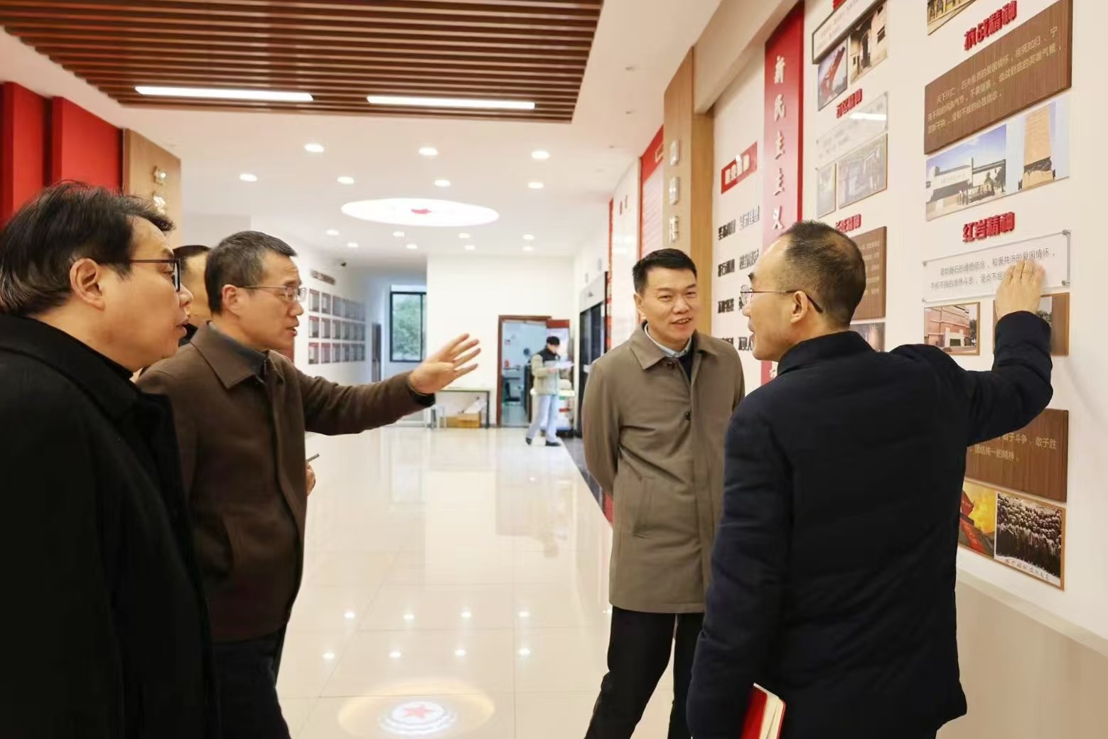 11日下午,重庆艺术工程职业学院党委书记唐加祥,党委委员、副校长徐永恒,公共课教学部副主任孙文东,宣传统战部副部长李亚卿及宣传部干事刘秋玲一行来校开展合作交流。我院党委书记李晓燕,执行院长姜土生热情邀请各位嘉宾参观了学院的文化阵地建设、学院发展简史和教学教研成果展览,用一张张图片、一段段文字勾勒出学院的历史底蕴与发展成就。