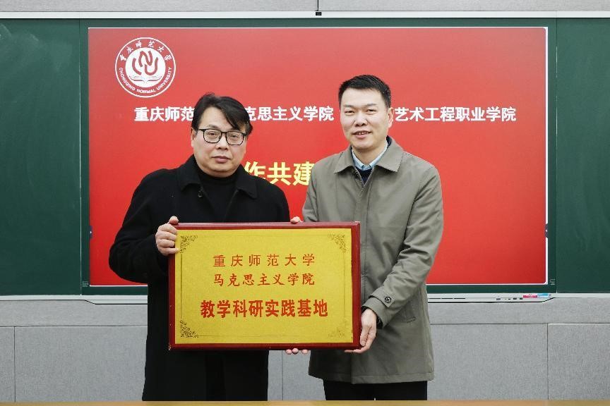 教学科研实践基地”牌匾,徐永恒副校长代表重庆艺术工程职业学院接牌。
