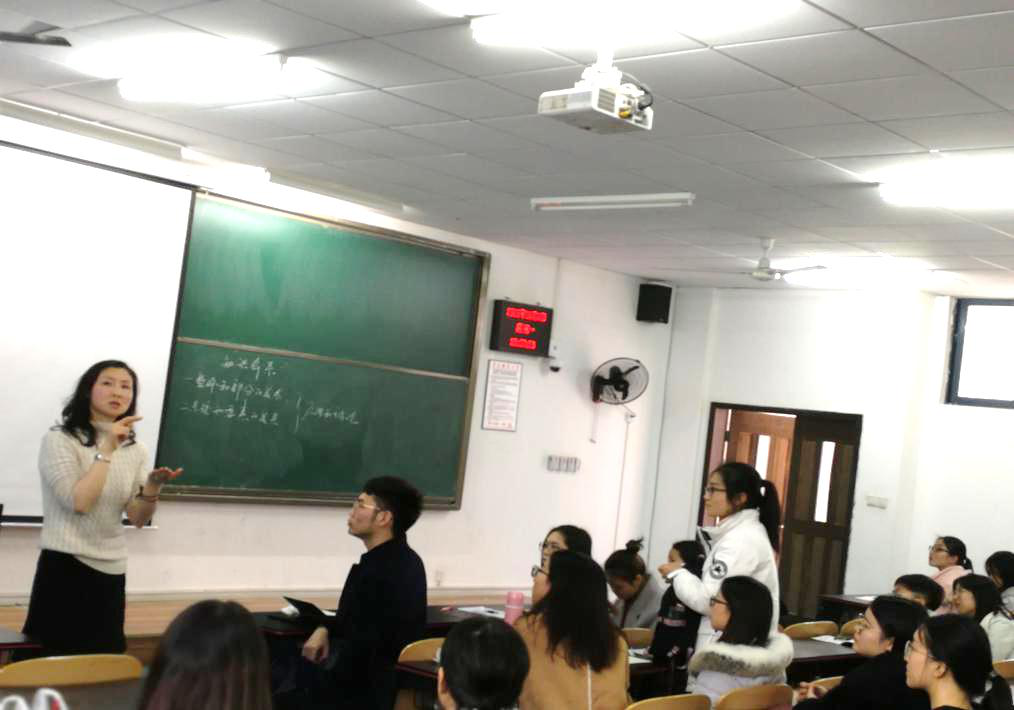 接着代老师谈到了同学们在实习中实际应注意的问题。代老师谈到在实习中听课时应注意要实现从“听课”到“课堂观察”的转变。紧接着代老师向同学门展示了优质教案,让同学们更加明确一份优秀教案应具有的特质。代老师还给大家分享了当前中学招聘的一些要求,并强调了应聘时学校比较看重的素质。