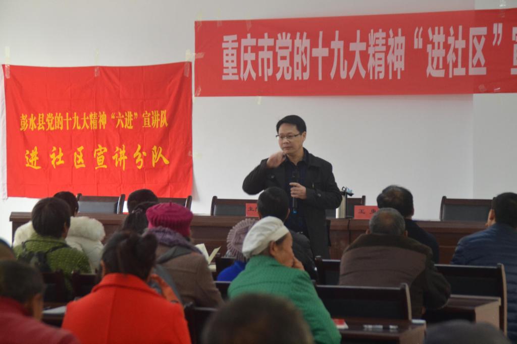 的教师应尽的责任和义务。2017年11月中旬—12月6日,我院陈洪、王勇、祝玉峰、孔宪峰、周秀红、田方林、赵玉民、孔庆茵、郑瑜、吴涯、王开莉等11位教师作为中共重庆市委党的十九大精神“进社区”宣讲团成员,深入到重庆市垫江、彭水、秀山、奉节、巫山、酉阳、石柱、万盛、忠县、巫溪、云阳等11个区县61个社区,以扎实的理论功底、通俗易懂的语言、生动丰富的案例,为6500余名社区群众宣讲党的十九大精神,受到社区群众的欢迎和肯定。各区县新闻媒体对宣讲团成员的宣讲进行了播报,产生了较好的社会反响。