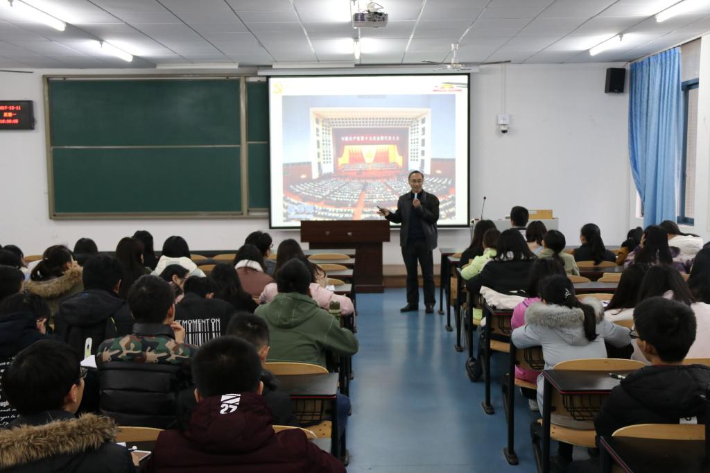 同时,学院党委书记刘军、院长陈洪、副书记姜土生、教师一支部书记郑瑜积极参加党的十九大精神“进校园”宣讲活动,为学院教师、研究生、本科生宣讲党的十九大精神5场,参与师生共900余人。另外,还为校外机关、企业、辅导员、高校基层党组织书记宣讲了党的十九大精神。