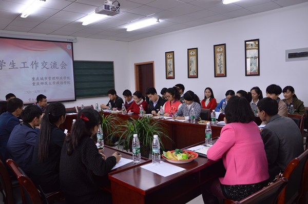 与重庆城市职业学院工程管理学院在汇贤楼309会议室召开学生工作交流会。出席交流会的有重庆城市管理职业学院工程管理学院团总支书记李国英、成人网