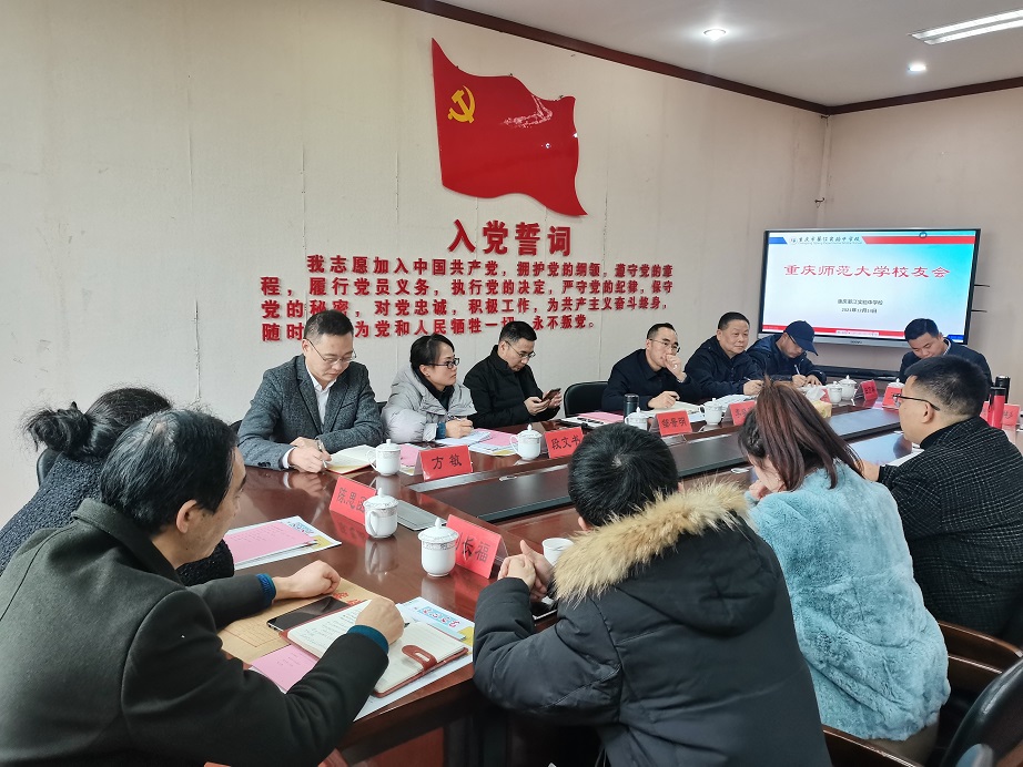 为有效推进“一院一区一县一片”对接工作,根据学校的工作部署和学院的工作计划,2021年12月14日,学院党委书记李晓燕、学校国内合作与联络中心副主任段文书、学院副院长况明安、党委副书记方敏、思想政治教育系副主任田方林组成工作组前往綦江区,开展“一院一区一县一片”情况调研与对接工作,介绍学校和学院情况,开展招生宣传,推荐毕业生就业,寻求校地合作,了解校友情况并筹备綦江校友分会。