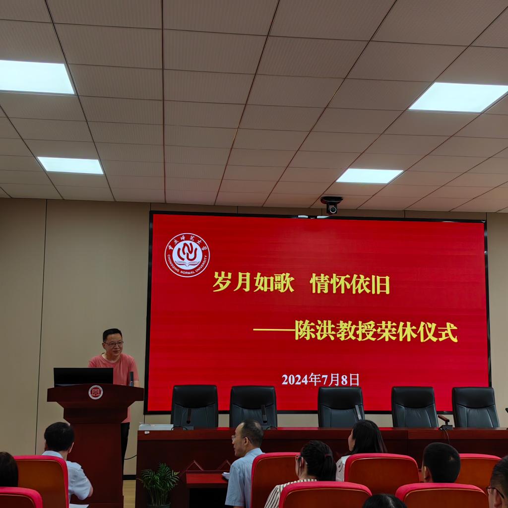 在106会议室为即将退休的陈洪教授举行了以“岁月如歌,情怀依旧”为主题的荣休仪式。荣休仪式由执行院长姜土生主持,全院教职工参加。