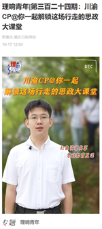 近日,新重庆客户端发表了由重庆日报思想周刊,成人网 党委宣传部、成人网 联合出品的理响青年第三百二十四期作品“川渝CP@你一起解锁这场行走的思政大课堂”。