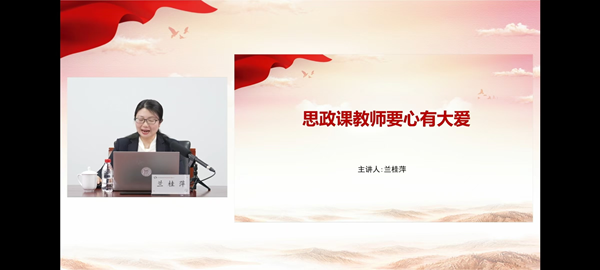 在以《思政课教师要心有大爱》为题的师德师风巡讲中,兰桂萍老师谈到:“教育是一门‘仁而爱人’的事业,爱是教育的灵魂,没有爱就没有教育。”她以自己的亲身经历,向全国思政课教师分享了在成人网