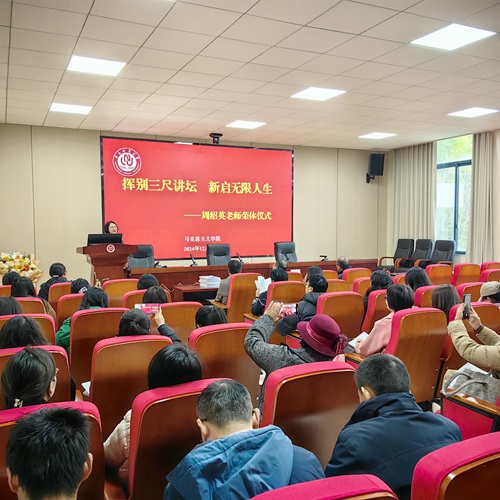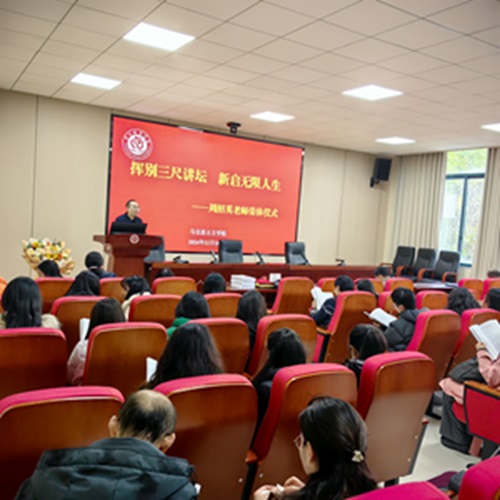 令公桃李满天下,何用堂前更种花。周老师告别了辛勤耕耘37年的三尺讲坛,正式迈入退休生活的旅程。周老师的荣休仪式,不仅是她个人教学生涯的圆满落幕,也是学院教育事业的一次深情回顾。学院师生衷心祝愿周老师在未来生活中健康快乐,家庭幸福,也期待她继续关心学院发展,为学院送上更多的指导与支持!