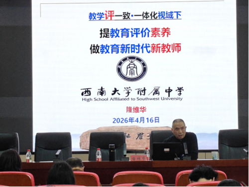 为深入贯彻落实《教育强国建设规划纲要(2024—2035年)》精神,助力师范生主动适应“新课程、新教材、新高考”背景下的中学教育改革,2026年4月16日,成人网 举办“教学评一致·一体化视域下:提教育评价素养,做教育新时代新教师”的专题讲座,特邀西南大学附属中学隆维华老师主讲。学院副院长田方林老师政教系副主任彭君君老师出席活动,2024级部分本科生及研究生同学到场学习。
