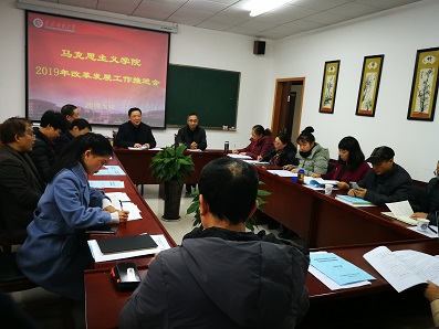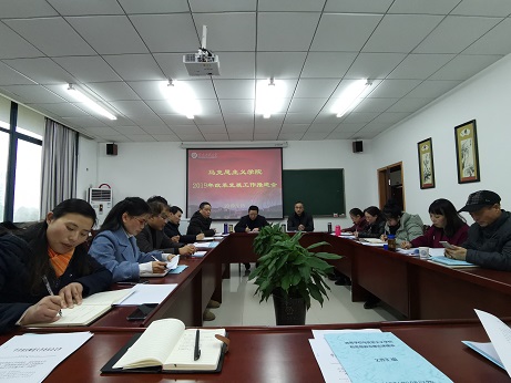 发展和思想政治理论课建设等相关文件精神,努力打造马克思主义理论教学、研究、宣传和人才培养的坚强阵地;二是勇挑重担。各科室负责人、系部负责人和教研室主任,是学院发展的骨干力量,要凝聚人心,传导压力,找好方向,带好队伍,带头在教学科研上做出新成绩;三是积极建言献策。将科室、系部、教研室的独有特色与亮点梳理,形成可复制、可推广的经验,进一步凝练特色亮点;四是争创佳绩。在2018年奠定的良好格局下,扎实开展各项工作,促进学院2019年再上台阶。