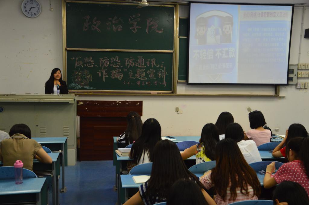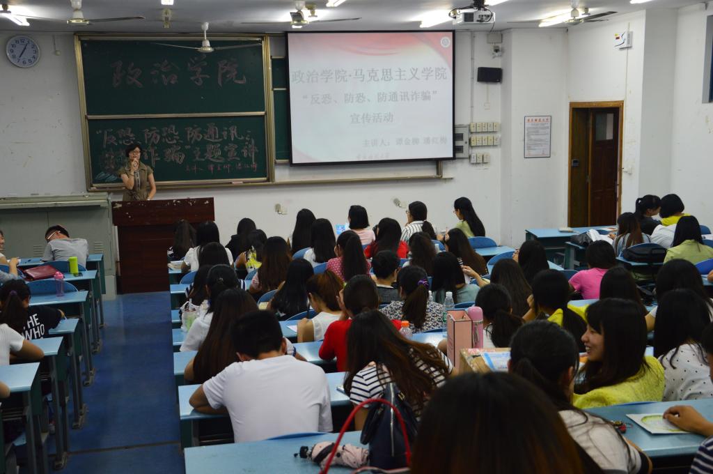 于弘德楼5201教室开展“反恐、防恐、防通讯诈骗”宣传活动。成人网