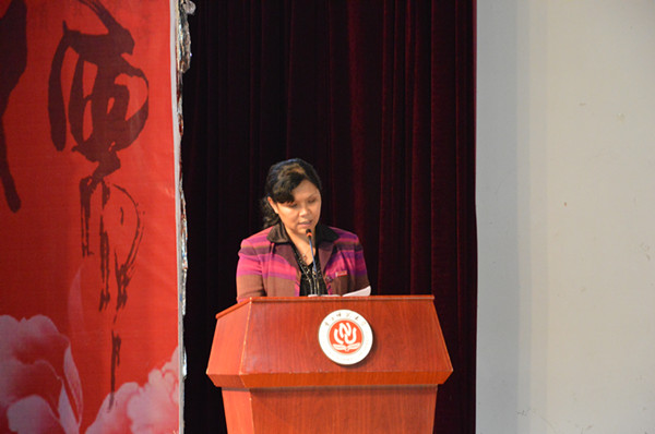 大会在庄严的国歌声中拉开帷幕。首先,党政办主任马文华宣读市级优秀表彰文件。学生处处长张明志宣读《关于表彰年度“先进班集体”、“文明寝室”、“三好学生”、“优秀学生干部”、“文明大学生”的决定》。校团委书记候明志宣读《关于表彰2013~2014学年度共青团系统优秀青年及青年群体的决定》。龚书记及各职能部门负责人分别为获奖代表颁奖。
