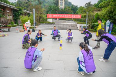 工会拟定的主题为“挑战运动极限、感悟集体力量、激发团队凝聚力”教职工拓展训练在海兰云天团建山外山拓展基地顺利开营。