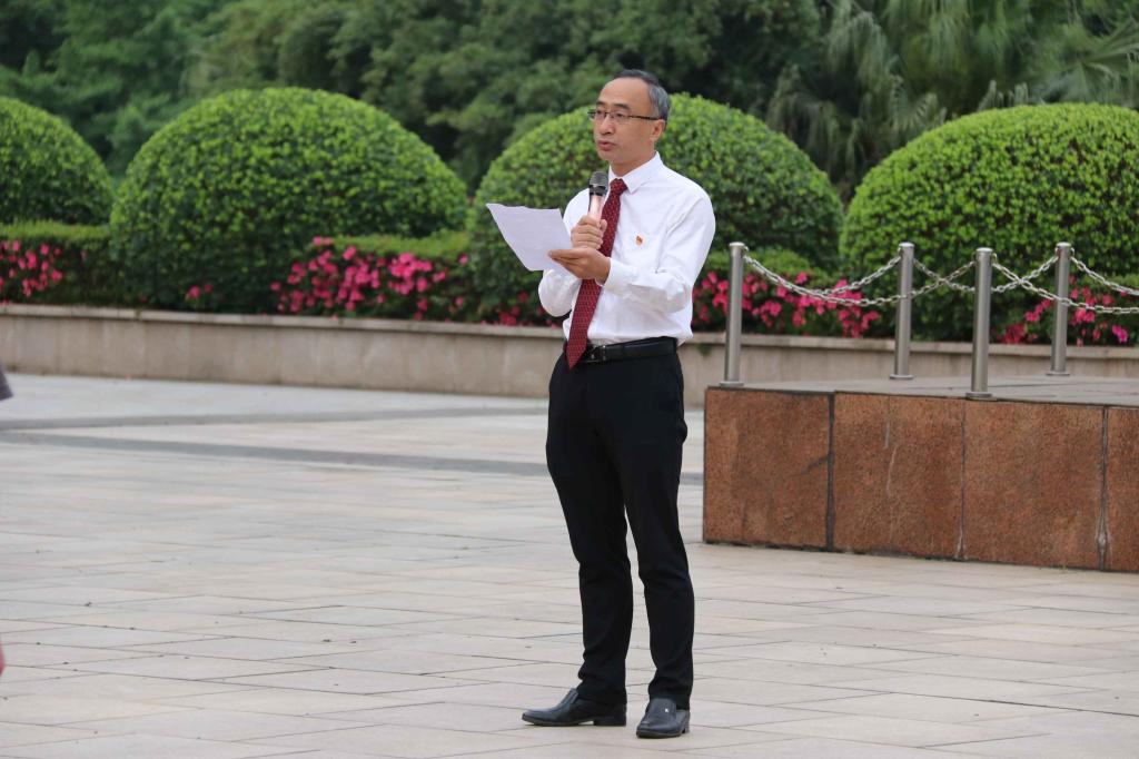 党委书记刘军,学工部、校团委老师,学院教师代表及全体学生参与活动。本次升国旗仪式由院党委副书记方敏主持。