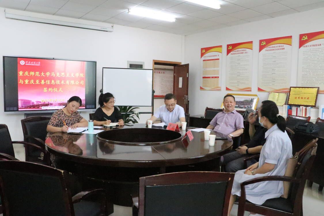 9月15日上午,我院在301会议室,与重庆至善网信息技术有限公司进行交流座谈,研讨下一步开展合作事宜。重庆至善网信息技术有限公司法定代表人侯愚千,成人网 副院长况明安、党委副书记方敏以及相关工作人员参会。经过交流,双方将在教学平台建设等方面开展深入合作,并签订高校思政课云教学平台合作协议。重庆至善网信息技术有限公司将建设高校思政课云教学平台,提供给成人网 使用。合作协议的签订,有利于开展多样化教学,提升思政课有效性。
