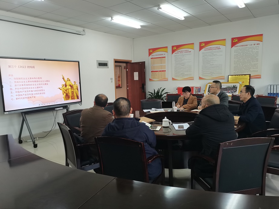 党委理论学习中心组在学院301会议室进行了党的十九届六中全会精神专题学习。本次学习会由党委书记李晓燕主持,党委委员田方林同志领学,全体党委委员、纪委委员参加了学习。