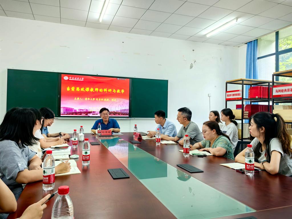 刘书林教授以自身学习、工作和科研经历入手,以讲故事的形式将思政课教师所应具有的科研能力和教学能力娓娓道来。