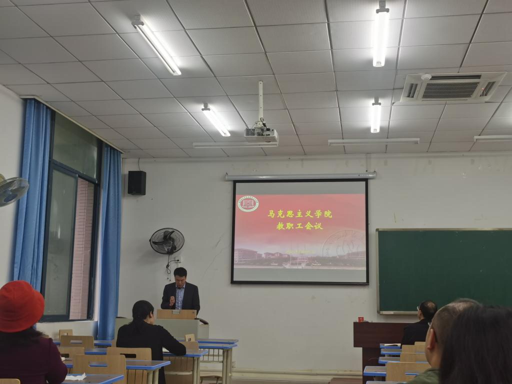 利用教职工集中大会时间在学院一楼109教室开展了学院党委理论学习中心组及全院教职工政治理论学习活动,本次政治理论学习主题为《习近平文化思想的内涵及启示》。学习会议由李晓燕书记主持。