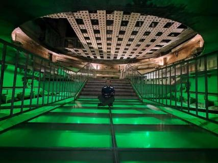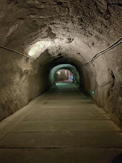 研学的重头戏自然是参观“816地下核工程”遗址。工程地处重庆市涪陵区白涛乌江东岸金子山腹地,与白涛何相邻,是中国第二个核原料工业基地-即三线建设进洞的原子能反应堆及化学后处理工程遗址。1966年该工作由周恩来总理亲自批准建设,先后投入6万多建设大军,总投资7.46亿元,总建筑面积10.4万平方米,是世界第一大人工洞体,中国唯一解密核反应堆。跟随着讲解员的步伐,大家依次参观了104核发电大厅、核反应堆大厅与锅底、中央控制室等开放的部分工程。庞大的洞体宛如迷宫,大型洞室18个,道路、导洞、支洞、隧道及竖井130多条,开挖的土石方达到150余成立方米,整个洞体建筑布局宛如迷宫,休量庞大,可谓“洞中有楼,楼中有洞”。走过近百米的甬道,大家在讲解员的带领下,参观了洞室、主厂房、反应大厅、中央控制室等工程遗迹,展现在眼前的反应堆遗址、密密麻麻的插孔、耗资巨大的精密仪器让人震撼。