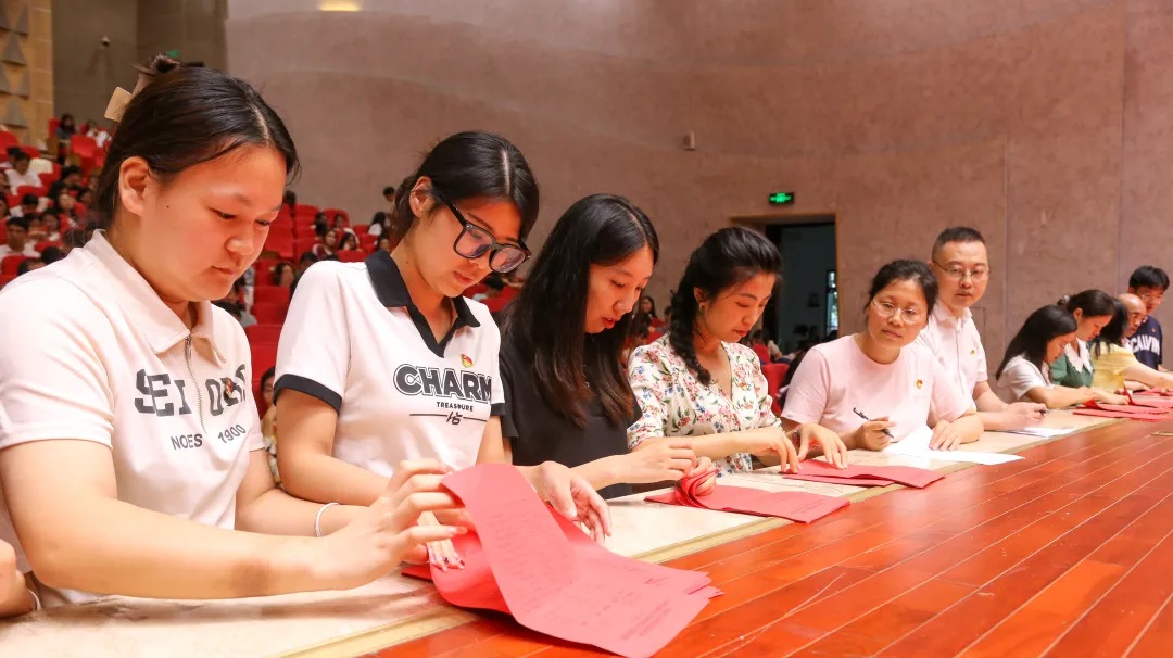 随后,李晓燕从应选代表的结构、推选代表的数量、填写选票的要求等三方面告知了填写选票的注意事项。四位监票人依次分发选票,现场每位党员同志秉承着对党负责、对学校党委负责、对成人网