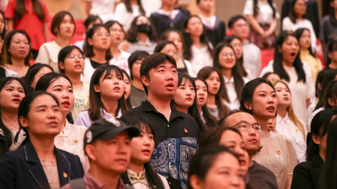 首先,全体起立,奏唱中华人民共和国国歌。在庄严肃穆的国歌声中,中国共产党成人网