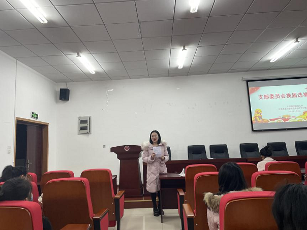 大会第二项议程:进行研究生第二党支部支委会委员和支部书记选举。李剑同志首先向各位党员详细讲解了支委会委员和支部书记的选举办法,并宣布了上次会议酝酿的候选人名单(罗莉、黄丹、徐琴、蔡淑芸)。接下来,我支部严格按照《中国共产党章程》和《中国共产党基层组织选举工作暂行条例》的相关规定,采取无记名、差额选举的方式进行选举。根据选举计票结果,罗莉、徐琴、蔡淑芸三位同志当选为研究生第二党支部的支委会委员。最后,新选出的三位委员随即召开支部委员会会议,选举支部书记并确定支委会的分工。李剑同志公布了最终结果:徐琴担任支部书记、罗莉担任组织委员、蔡淑芸担任宣传委员。