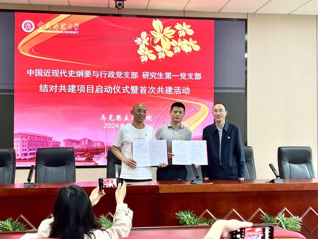首先,研究生第一党支部书记李剑老师作了讲话,他介绍了学生党支部概况,表示结对共建活动不仅有利于支部的建设和发展,也将会使学生受益匪浅。接着,黄正书记介绍了教工党支部概况,他谈到,结对的目的就是要充分发挥教工党支部的服务、育人的功能。随后,双方签署了结对共建协议,两个支部将围绕支部建设、核心文化、学术活动等方面开展深度交流与合作。