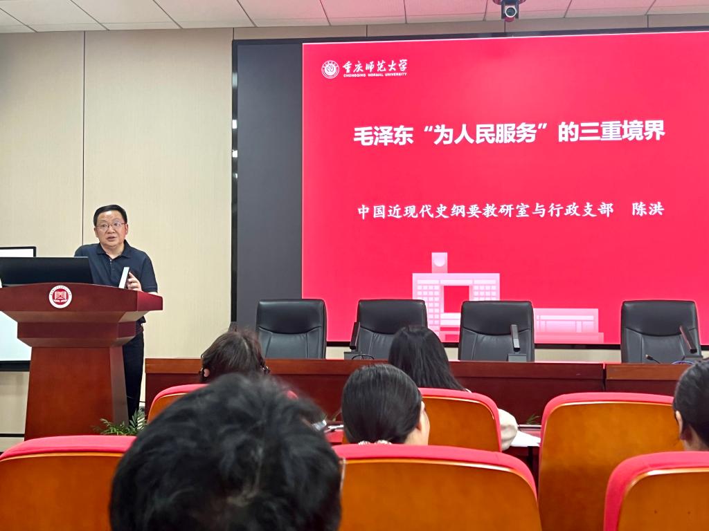 启动仪式结束后,教师党员陈洪教授做了题为《毛泽东“为人民服务”的三重境界》专题报告,开启了首次共建活动。陈洪教授结合毛泽东同志的相关论述,深入剖析了毛泽东“为人民服务”思想的三重境界:“为人民服务”、“坚持为人民服务”、“全心全意为人民服务”,勉励师生党员在任何时候,为人民服务的立场不能变、宗旨不能忘、观点不能丢。在有限的工作时间里,将“全心全意为人民服务”的思想无限贯彻下去,自觉认真学习马克思主义及其中国化的创新理论,每一位共产党员都应该在“读原著、学原文、悟原理”上面狠下工夫,做一位合格的新时代党员。