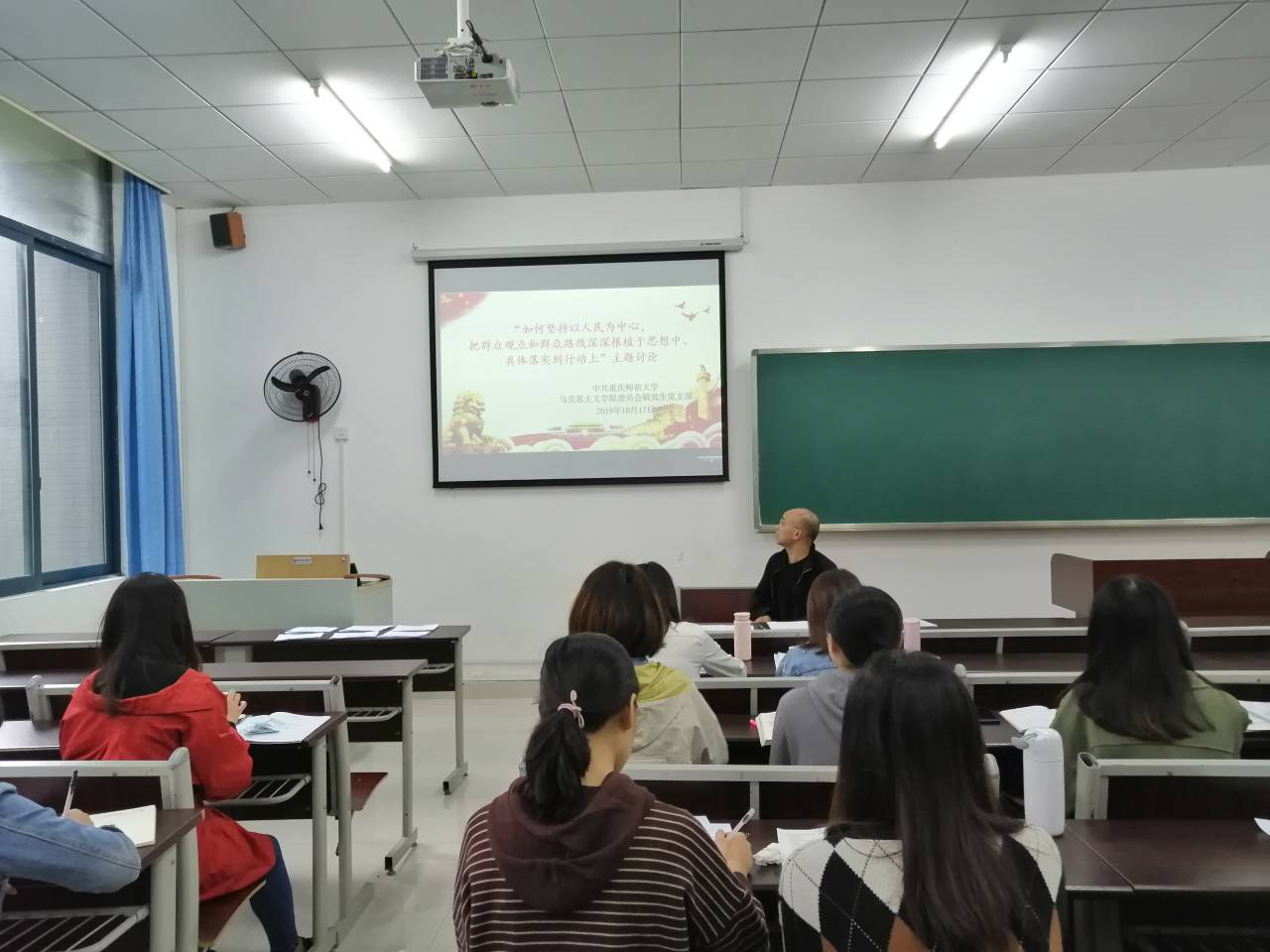 研究生党支部在汇贤楼108教室召开了“不忘初心、牢记使命”主题教育。本次讨论的主题为“如何坚持以人民为中心,把群众观点和群众路线深深根植于思想中,具体落实到行动上”,活动由支部书记李剑主持。