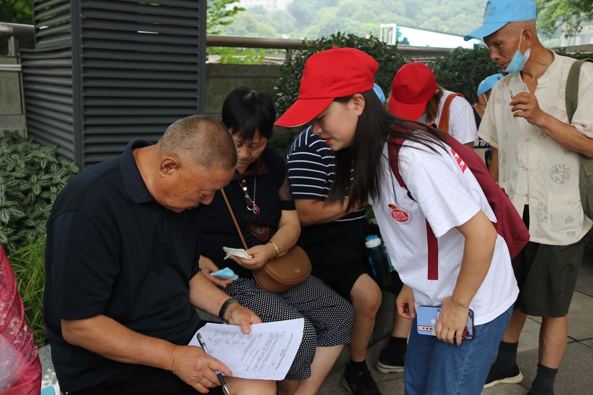 旭日东升,光芒永存。上午8时30分,实践团成员顺利抵达红岩村,面向不同年龄阶段的游客们开展调查问卷活动,以了解民众对红岩文化的认知情况及宣传教育现状。在问卷调查过程中,实践团成员遇见了一位七十岁的老奶奶,一番交谈后团队成员了解到原来老者既是一位党员,也是一名教师。她为大家介绍了红岩村内有名的黄葛树的故事,并追忆了先辈们不求吃、不求穿、一心革命的精神,最后寄语实践团队成员:一定要坚定不移跟党走,积极发扬红岩精神。通过与老人的交流,团队成员深刻体会到了老人言语中饱含着对红岩精神坚定的信仰、对青年学子大有可为的期待与信任。红岩精神不仅仅是作为语言文字附于书本之中,更是作为一种内心追求化为我们青年一代的深刻践行。