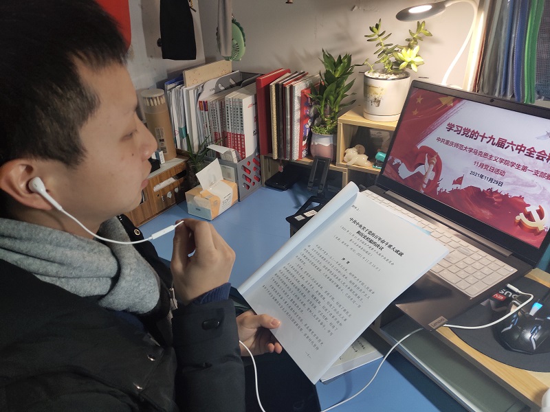 学生一支部积极响应上级党组织学习党的十九届六中全会重要精神的号召,于2021年11月29日上午9:00通过腾讯会议在线上开展了“学习党的十九届六中全会精神”的主题党日活动,会议由支部党员符路同志主持,支部全体党员与会。
