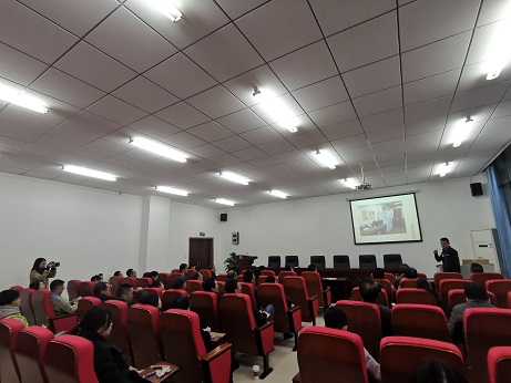 接着,基地成员黄正老师以他的美国之行的照片引出话题,并以生动多样的图片带领大家走进他的访学之旅。黄老师从他访学城市的发展状况、访学学校的建设情况、学院学科专业的基本情况以及他访学的学习状况四个方面进行了分享,强调了其访学单位在文献学习、作业布置和课程讲授等诸多方面的授课形式和方法值得大家借鉴。